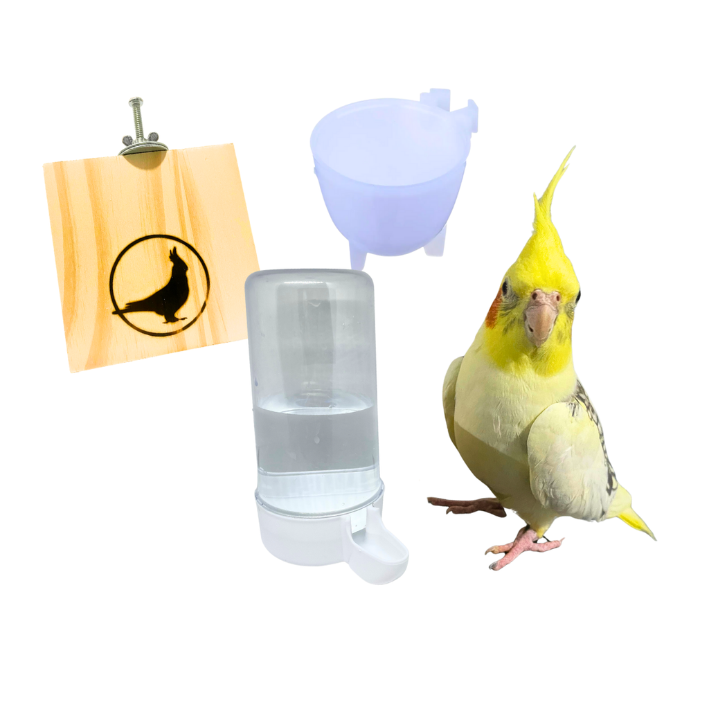 Kit Completo Calopsitas Mansa – Bebedouro + Plataforma + Porta Ovo